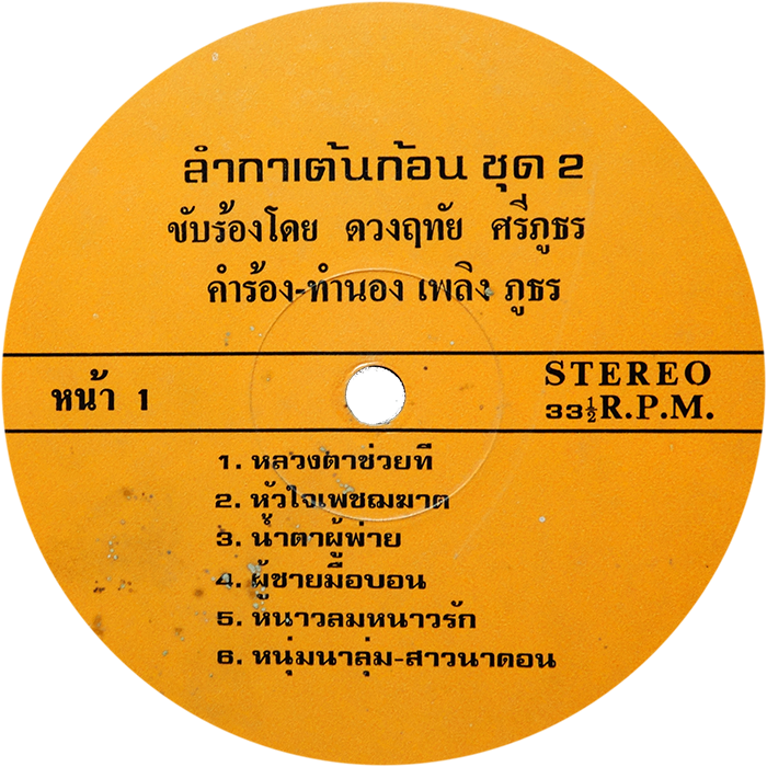 Side A contains 5 songs by Duang Ruthai & Sri Phuthon. Side B1 & B2 are sung by Duang Ruthai & Plerng Photon, B3,4,5 are by Duang Ruthai & Thin Nakon.