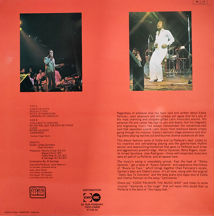 Great latin/salsa LP from nuyorican pioneer Eddie Palmieri, who was born in New York City to Puerto Rican parents. He is best known for his Latin-Jazz approach that includes extended Jazz influenced solos over Latin rhythms.