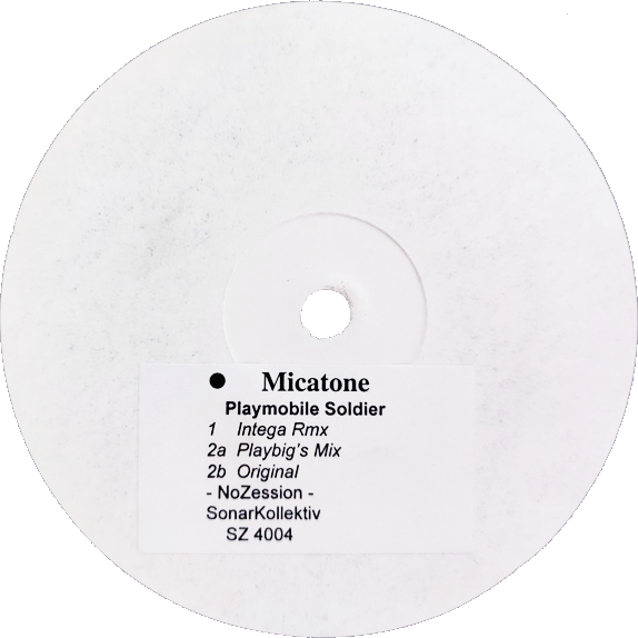 White label pressing of Micatone's beautiful future jazz tune Playmobile Soldier from their celebrated 2001 debut album Ninesongs. Includes remixes by Intega & Playbig.
