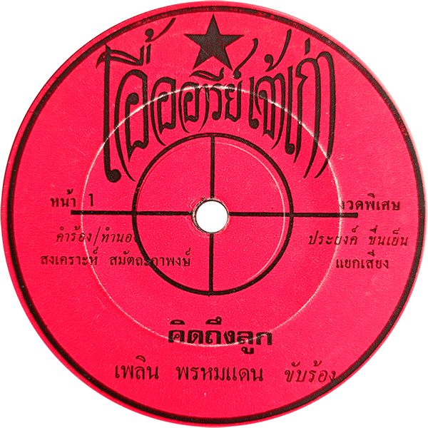 This classic release features two funky lukthung songs. 'Kid Tueang Lue' by legendary lukthung singer Plern Promdaen (เพลิน พรหมแดน) on side A, and 'Father Kai Jae' by singer Lop Burirat on Side B.