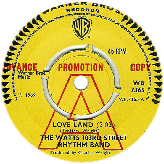 Great funky soul 45 from Charles Wright & The Watts 103rd Street Rhythm Band. The A-side has the nice vocal soul tune Love Land, with the B-side being a nice instrumental funk workout.