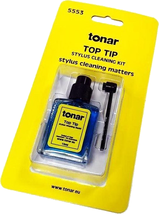 The Tonar Top Tip is a powerful cleaning solution that will detach all the dirt and tough grime that your stylus collects from the record during playback. The kit contains the Tonar Top Tip cleaning and lubricating liquid and a Tonar Clean-Tip carbon fibre stylus cleaning brush.