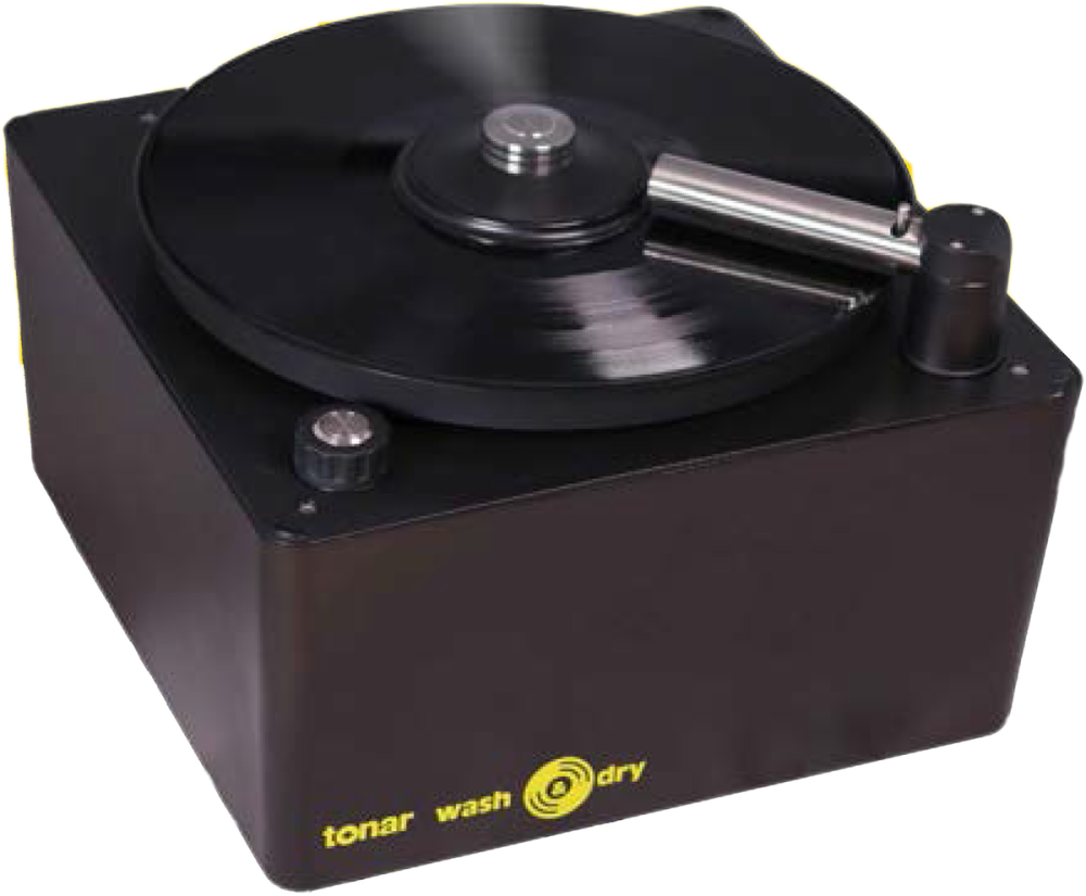 The Tonar Wash & Dry is an all-in-one solution to clean your records in the most easy way. The set includes a high quality goat hair brush, concentrate for one liter of cleaning fluid, a special stainless steel record clamp with rubber rings to protect the label during washing, and a dust-cover. With just one single button, you can control the direction of the rotation of the platter (clockwise or counter clockwise), and activate the vacuum arm. Instead of having to change vacuum arms for different record formats, the Tonar Wash & Dry uses only one arm with a switch button to change between 7”, 10” and 12” records. The vacuum system of the Tonar Wash & Dry is extremely silent, yet very powerful. The vacuum will collect all the liquid in a reservoir inside of the device. The wastewater level can be read-off on right hand side of the machine, and can be easily emptied with the hose.