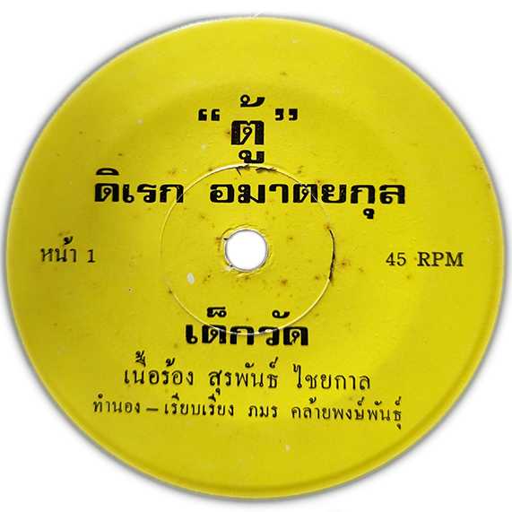 Performed by Thai vocalist Direk Amatayakul, the A-side's lyrics were written by Suraphan Chaiyakan on an arrangement by Pamorn Klaipongphan. The track is called 'Dek Wat'.