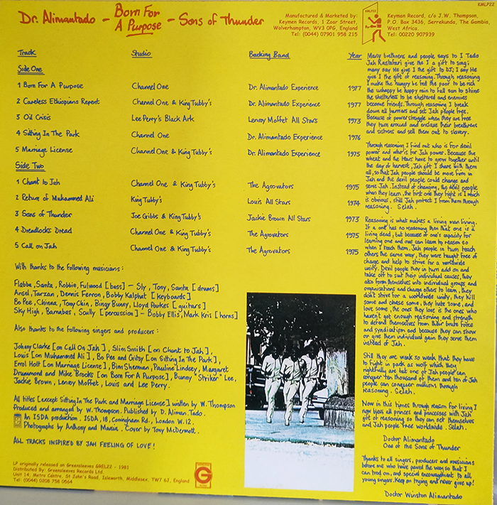 1. Born For A Purpose 2. Careless Ethiopians Repent 3. Oil Crisis 4. Sitting In The Park 5. Marriage Licence 6. Chant To Jah 7. Return Of Muhammed Ali 8. Sons Of Thunder 9. Dreadlocks Dread 10. Call On Jah