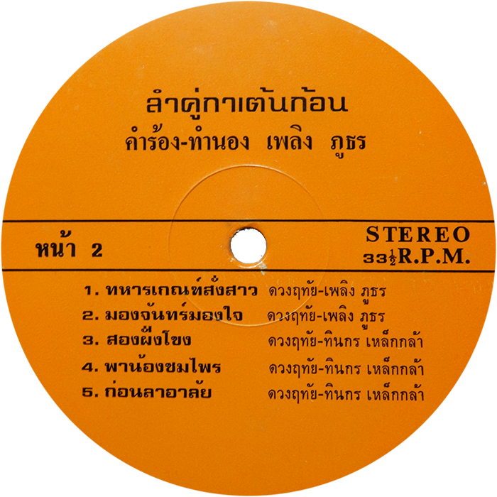 Side A contains 5 songs by Duang Ruthai & Sri Phuthon. Side B1 & B2 are sung by Duang Ruthai & Plerng Photon, B3,4,5 are by Duang Ruthai & Thin Nakon.
