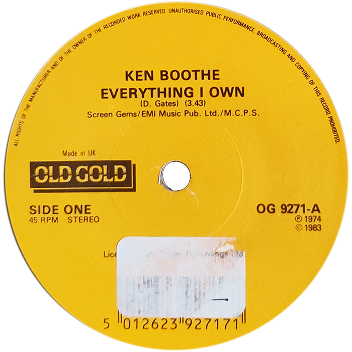 Everything I Own / Help Me Through The Night 7"