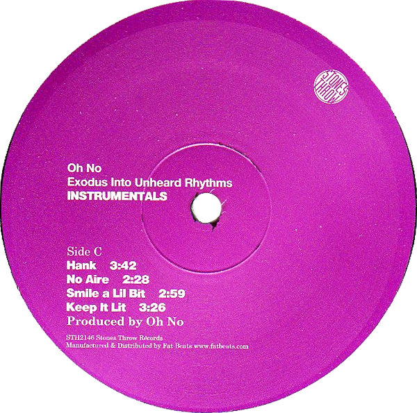 Double LP with instrumental versions of Oh No's self-produced album Exodus Into Unheard Rhythms from 2006 on Stones Throw Records. The debut album of Madlib's younger brother was received with critical international acclaim, especially being able to hold his own in the shade of his older brother's achievements.