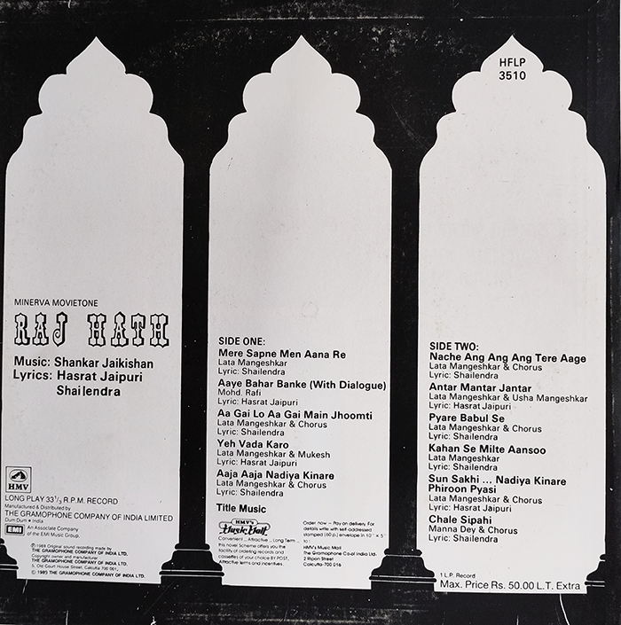 Bollywood soundtrack in excellent condition. The music was already composed in 1956 for the Hindi film Raj Hath, but didn't get a vinyl release until 1988.
