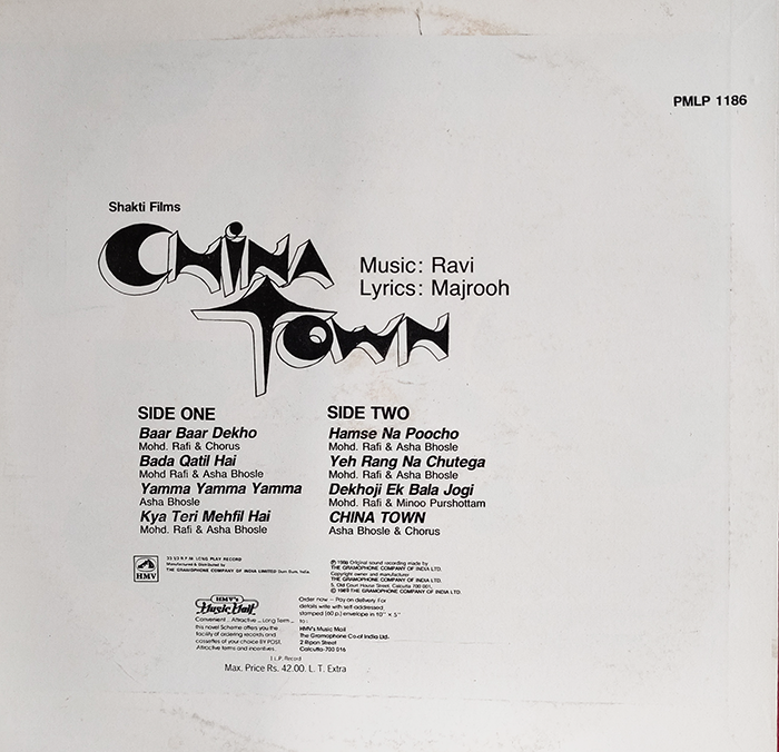 Bollywood soundtrack of the Hindi movie China Town (1962), was released on vinyl for the first time in 1987.