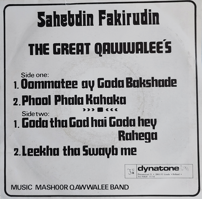 1. Oommatee Ay Goda Bakshade 2. Phool Phala Kahaka 3. Goda Tha God Hai Goda Hey Rahega 4. Leekha Tha Swayb Me