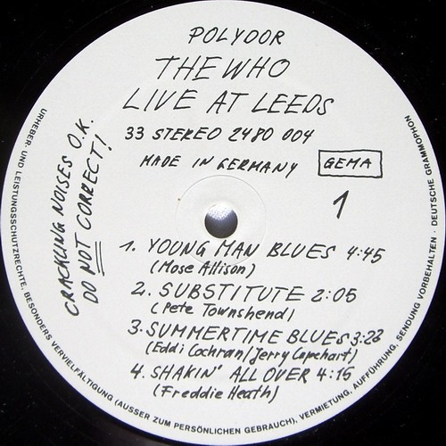The Who were looking for a way to follow up their 1969 album Tommy, and had recorded several shows on tours supporting that album, but didn't like the sound. Consequently, they booked the show at Leeds University, along with one at Hull City Hall the following day, specifically to record a live album. Six songs were taken from the Leeds show, and the cover was pressed to look like a bootleg recording. The sound was significantly different from Tommy and featured hard rock arrangements that were typical of the band's live shows.