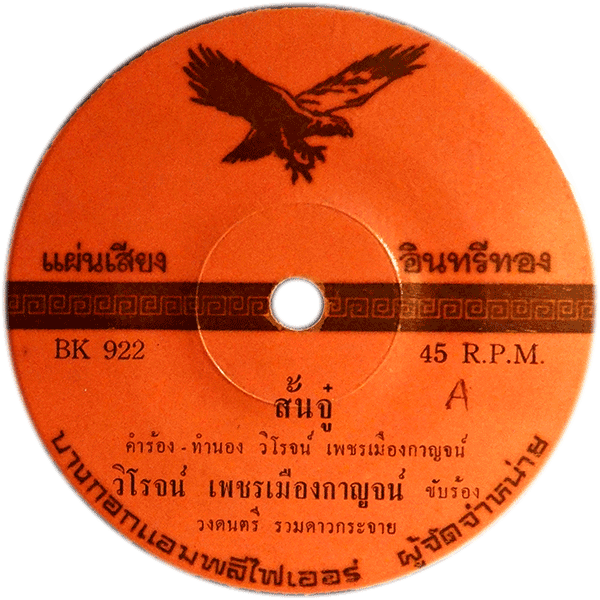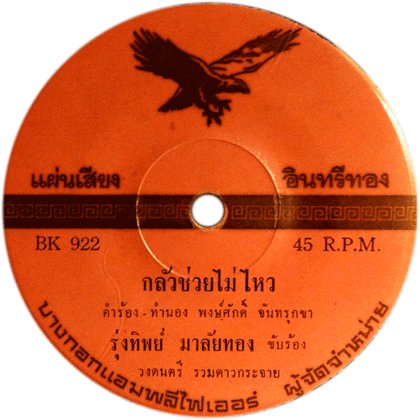 This is the 7" vinyl release on Golden Eagle Records (อินทรีทอง) in Bangkok, Thailand under Cat.No. BK922. There is also a different pressing on the Golden Lion Label (ตราสิงห์ทอง) Cat.No. ST.01.
